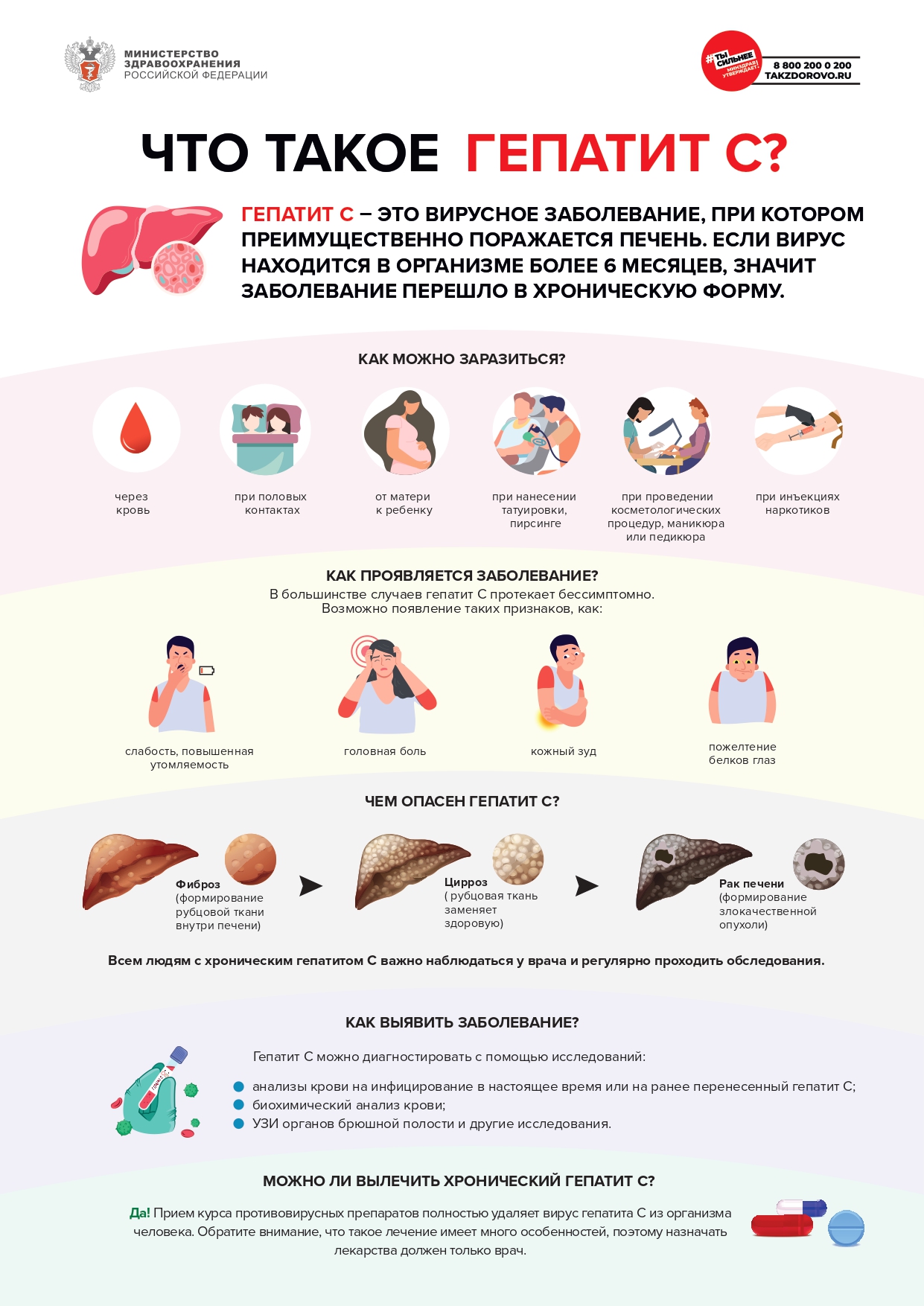 36. Пациенту разъясняются пути и факторы передачи инфекции, меры безопасного поведения с целью предотвращения распространения вируса, доступные ему виды помощи, дальнейшая тактика диспансерного наблюдения и лечения. Также даются рекомендации, направленные на предупреждение активизации инфекционного процесса (исключение алкоголя, применение с осторожностью лекарственных средств, обладающих гепатотоксическими