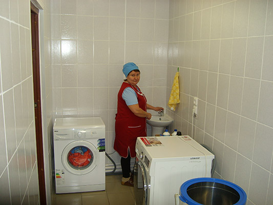 Имеется своя прачечная, дезинфекционная камера, автоклав.