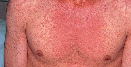 сыпь на коже (на лице, туловище, руках, ногах);